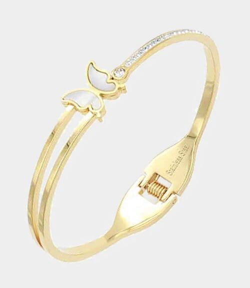 Butterfly Accented Rhinestone Gold Plated Closure Bracelet