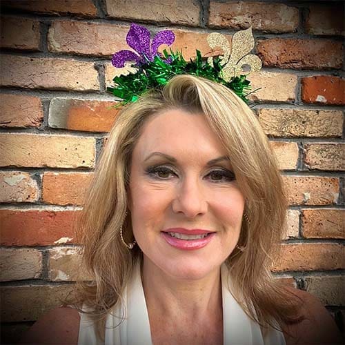 Purple, Green and Gold Mardi Gras Fleur De Lis Glitter Headband with green tinsel.