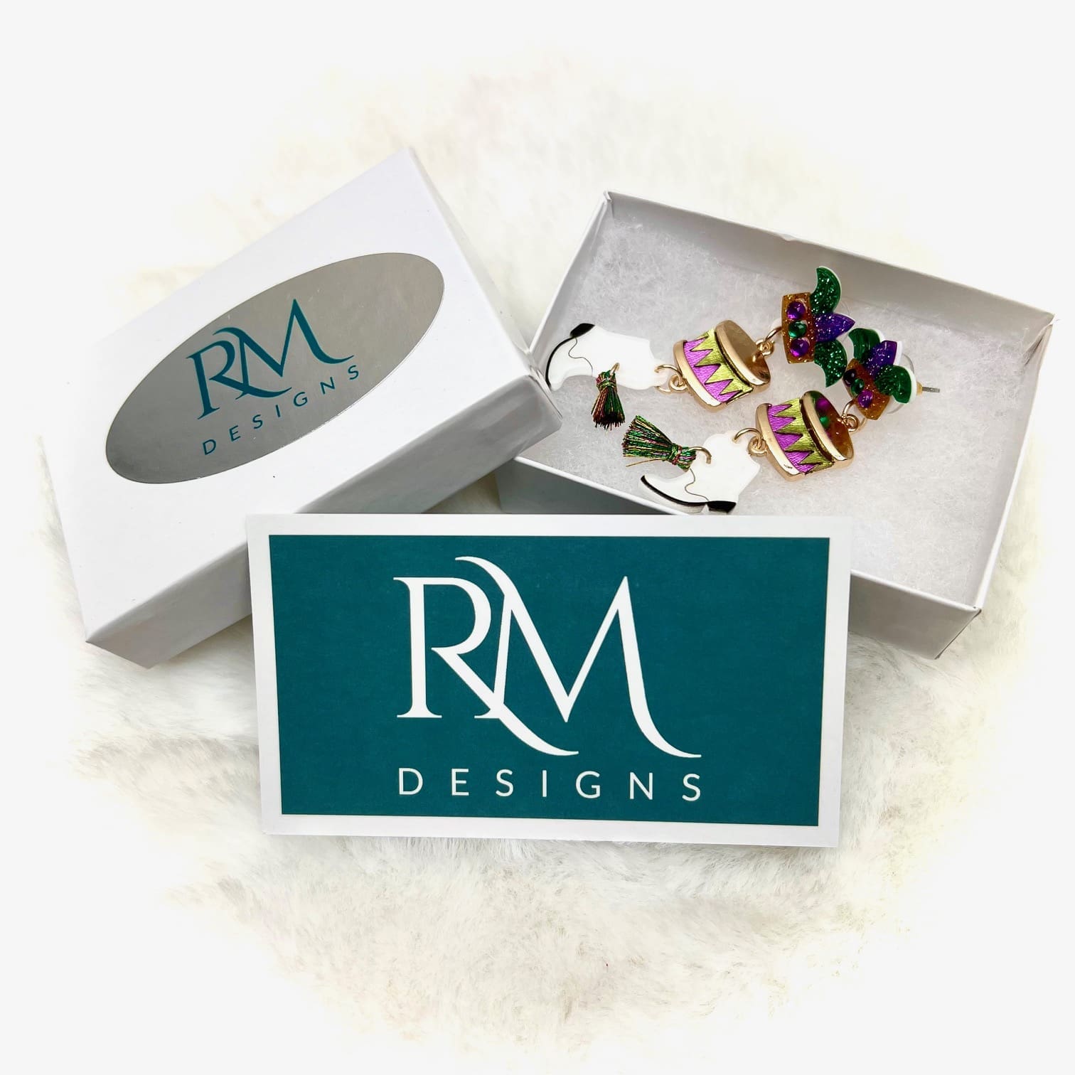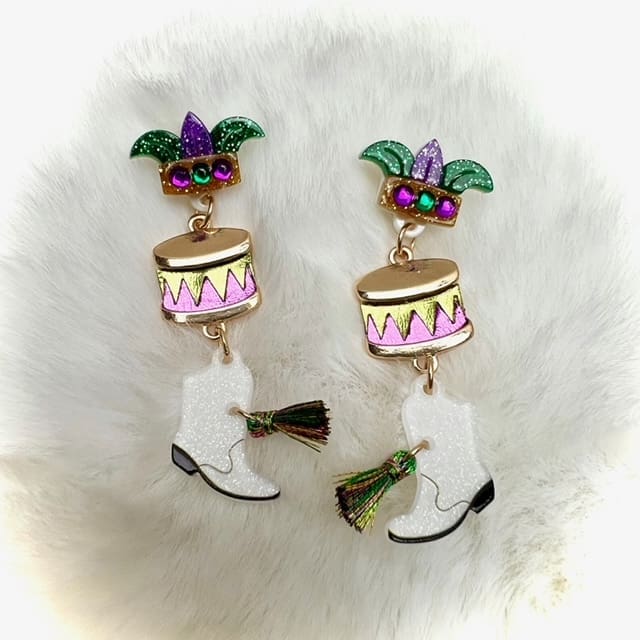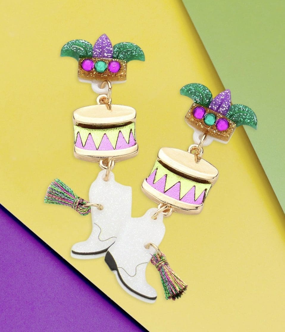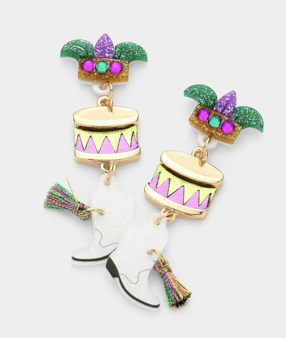 Mardi Gras Mask Drum Boots w/Tassel Dropdown Earrings