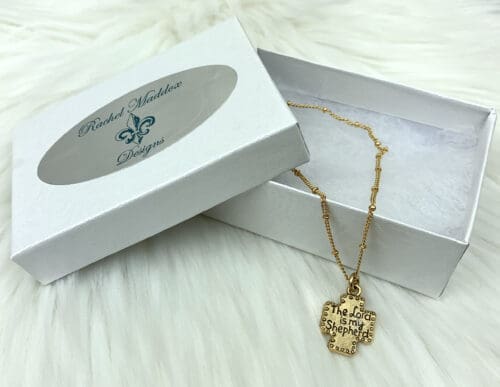 SIZE – 16″  chain length and approx. 1/2 inch charm.